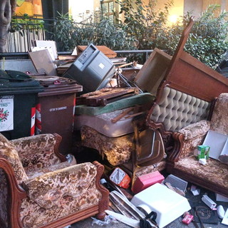 Sanremo: ennesima vergogna dei 'furbetti dell'immondizia', catasta di mobili abbandonata in via Galilei (Foto e Video)